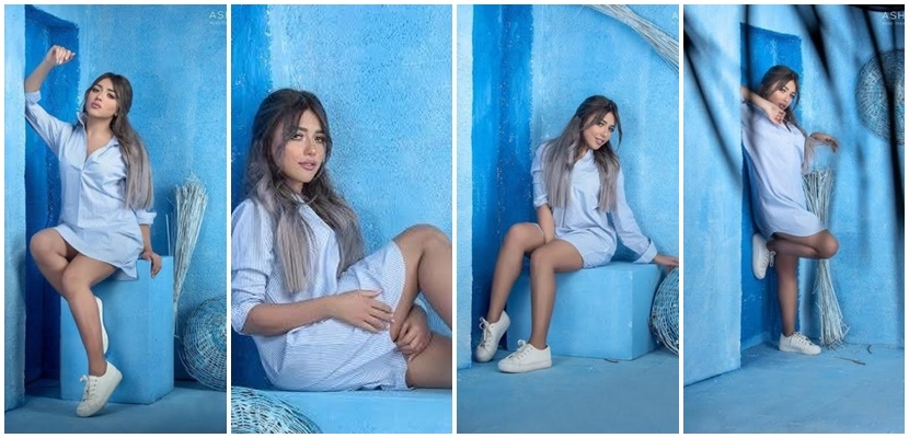 سارة سلامة أطلقت 8 صور من جلسة التصوير الأخيرة بنفس توقيت نشرها عبر حساب المصور محمود عاشور، وأطلت بقميص بدون سروال، واستخدمت يديها لستر المساحات “الممنوعة” من التصوير